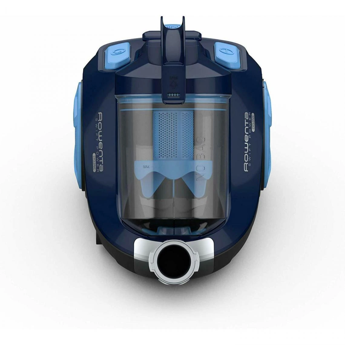 Aspirateur sans sac ROWENTA RO2981EA Swift Power Cyclonic – Un aspirateur traîneau pratiqueFacile à manipuler, compact et léger, cet aspirateur sans sac est l’accessoire incontournable pour aspirer les revêtements de façon efficace. D’une puissance de 750 W, cet aspirateur sans sac ROWENTA bénéficie du système Swift Power Cyclonique permettant de filtrer 99,98 % de la poussière. Facile à utiliser, il est équipé d’un tube en métal télescopique avec une brosse à tête d’aspiration efficace et de plusieurs accessoires polyvalents, dont une brosse pour le parquet et une autre pour les meubles. Facile à vider, son réservoir d’une capacité de 1,2 L est simple à nettoyer.Un aspirateur sans sac designCompact, cet aspirateur sans sac bleu se fait discret et ne prend qu’un minimum de place. Design et tendance, résolument élégant, il séduit par son design bicolore aux tonalités de bleus et ses 3 roues multidirectionnelles pour une manipulation fluide. – Capacite en litres :1,2 . Puissance maxi en Watts :750 . Rayon d’action :7,6 m . Niveau sonore :77 dB(A) . Poignee de transport :oui . Brosses specifiques :brosse parquet . Accessoires :mini turbobrosse, suceur 2 en 1 . Dispo pcs detachees donnee fournisseur :10 ans . Garantie :2 ans , Pièces , Main d’oeuvre . – Compact, léger et maniable. Le système Swift Power Cyclonic filtre 99,98 % de la poussière.