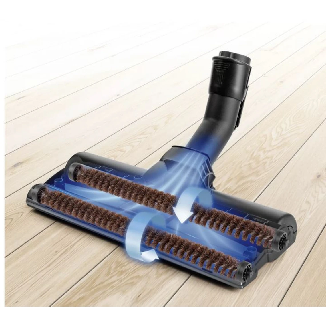 Le nouveau suceur pour sols durs duoSoft est doté de deux brosses rotatives pour une aspiration en profondeur et en douceur. Non seulement il déplace la saleté, mais il est également idéal pour les tapis.