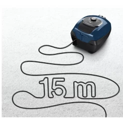 Grâce à un rayon d’action record de 15 m, aspirez en toute autonomie sans avoir à changer de prise !