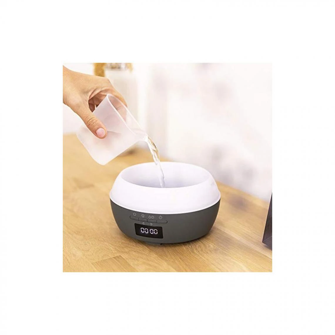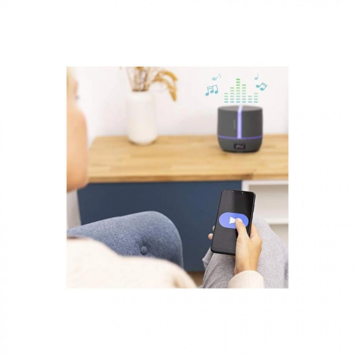 Diffuseur d’arômes avec une grande capacité de 500 ml qui permet une utilisation prolongée sans avoir à remplir le réservoir. En outre, il dispose d’une grande surface de couverture de 30 m², son humidification et sa bonne odeur grâce aux huiles essentielles atteindront tous les recoins de la pièce dans laquelle il est placé. Utilisation idéale pour l’aromathérapie, sa sortie de vapeur est de 25 ml/h. Respirez un parfum agréable à tout moment et profitez de vos moments de détente. Contrôlez toutes vos fonctions et configurations depuis votre smartphone grâce à l’application. En outre, vous pouvez jouer vos chansons et groupes préférés grâce au haut-parleur intégré. Il dispose d’un écran LED qui affiche l’heure, grâce à laquelle vous pouvez configurer d’autres fonctions du diffuseur comme l’alarme, les modes ou la minuterie. Sa minuterie jusqu’à 12 heures vous permet de sélectionner le temps de fonctionnement souhaité, puis il s’éteint. Il dispose de 3 modes de fonctionnement : faible, moyen et haut, grâce auxquels vous pouvez régler l’intensité de la sortie de vapeur. Le diffuseur d’arômes a la fonction réveil, grâce à laquelle il est possible de configurer une heure déterminée et que le diffuseur nous avertit. Ses 7 couleurs LED contribuent à créer une ambiance parfaite pour les moments de détente. Il est possible de laisser une couleur fixe ou aléatoire.