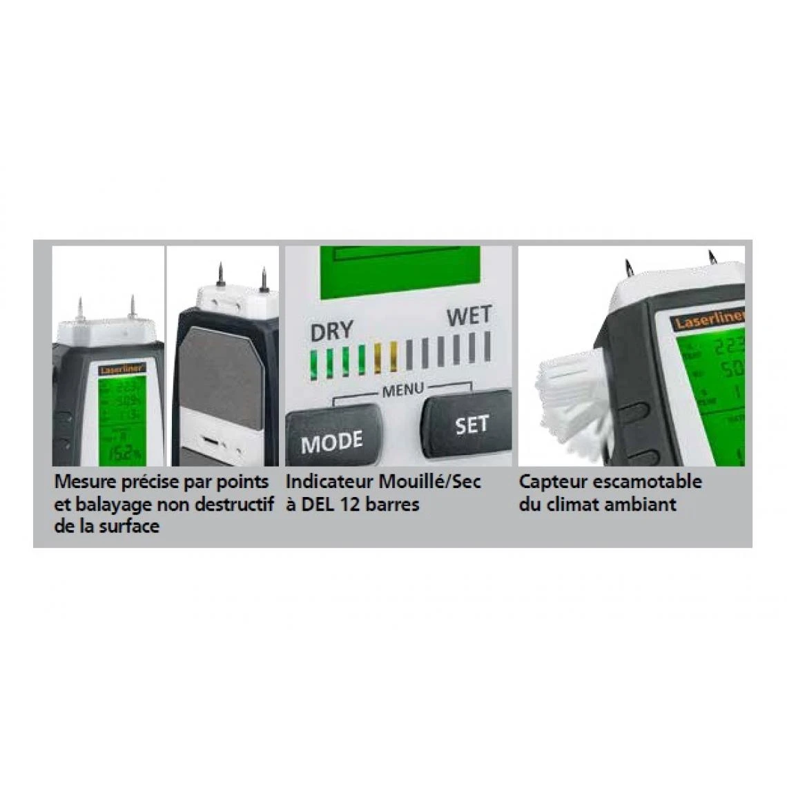Les avantages de cet instrument de mesure d’humiditĂ© Laserliner MultiWet-Master Compact Plus sont :