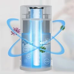 ăBrumisation Ă 360 degrĂ©să Distributeur de dĂ©sinfectant d’alcool. Atomisation fine Ă la lumiĂšre UV au niveau nano, stĂ©rilisation efficace sans impasse.