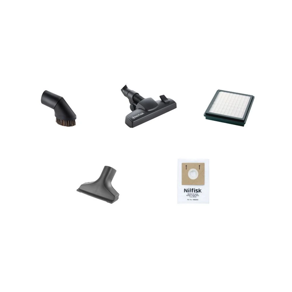 Aspirateur avec sac ONE LBB10P05AHB15 BASIC Nilfisk 128390112 compact et performant, parfait pour les petites surfaces. Economique : Consommation d?énergie réduite. Peu encombrant : Mini compact. Pratique : Accessoires embarqués. Rangement facilité : Sangle de rangement du flexible.
