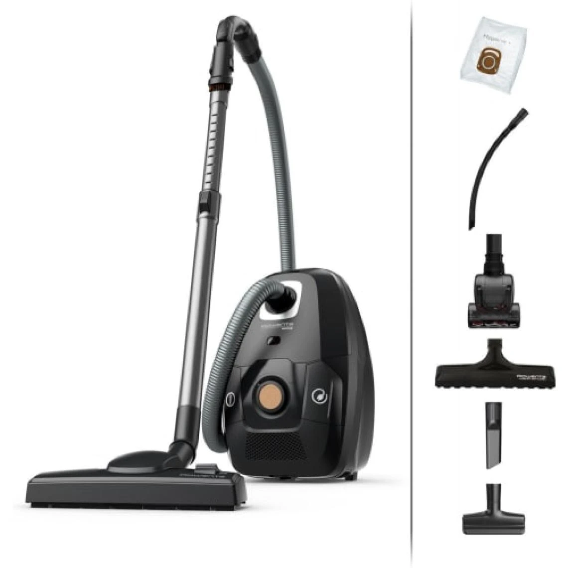 Points forts Rowenta Green Force Effitech Aspirateur Traineau 400W 4.5L 64dB Filaire Suceur Flexible HEPA Noir