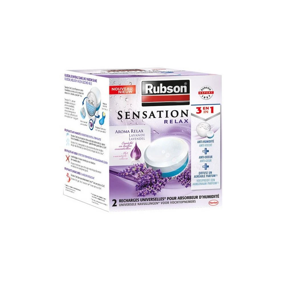 2 x recharges pour absorbeur d?humiditĂ© 3en1 lavande – 2091195 – Recharges pour l’absorbeur d?humiditĂ© Rubson 2091195. Les recharges parfumĂ©es lavande sont enrichies en huiles essentielles et permettent de crĂ©er une atmospĂ©re unique dans votre maison. – Type de produit : Recharge pour absorbeur.