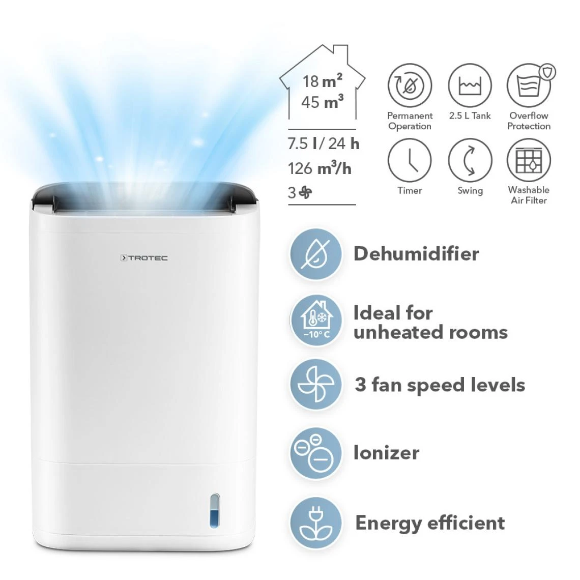 Points forts Trotec TROTEC Déshumidificateur à adsorption TTR 50 E absorbeur d’humidité problèmes d’humidité