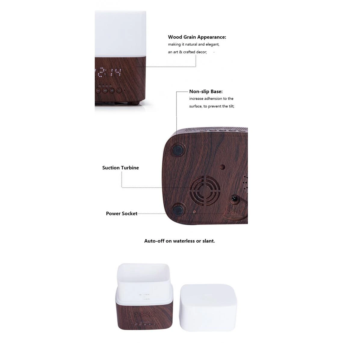 * Diffuseur de réveil: horloge synchrone, vous pouvez définir l’heure de l’alarme, plusieurs conceptions personnalisées fonctionnelles pour répondre aux différents besoins de la vie. L’horloge a une fonction de mémoire hors tension et est facile à configurer;