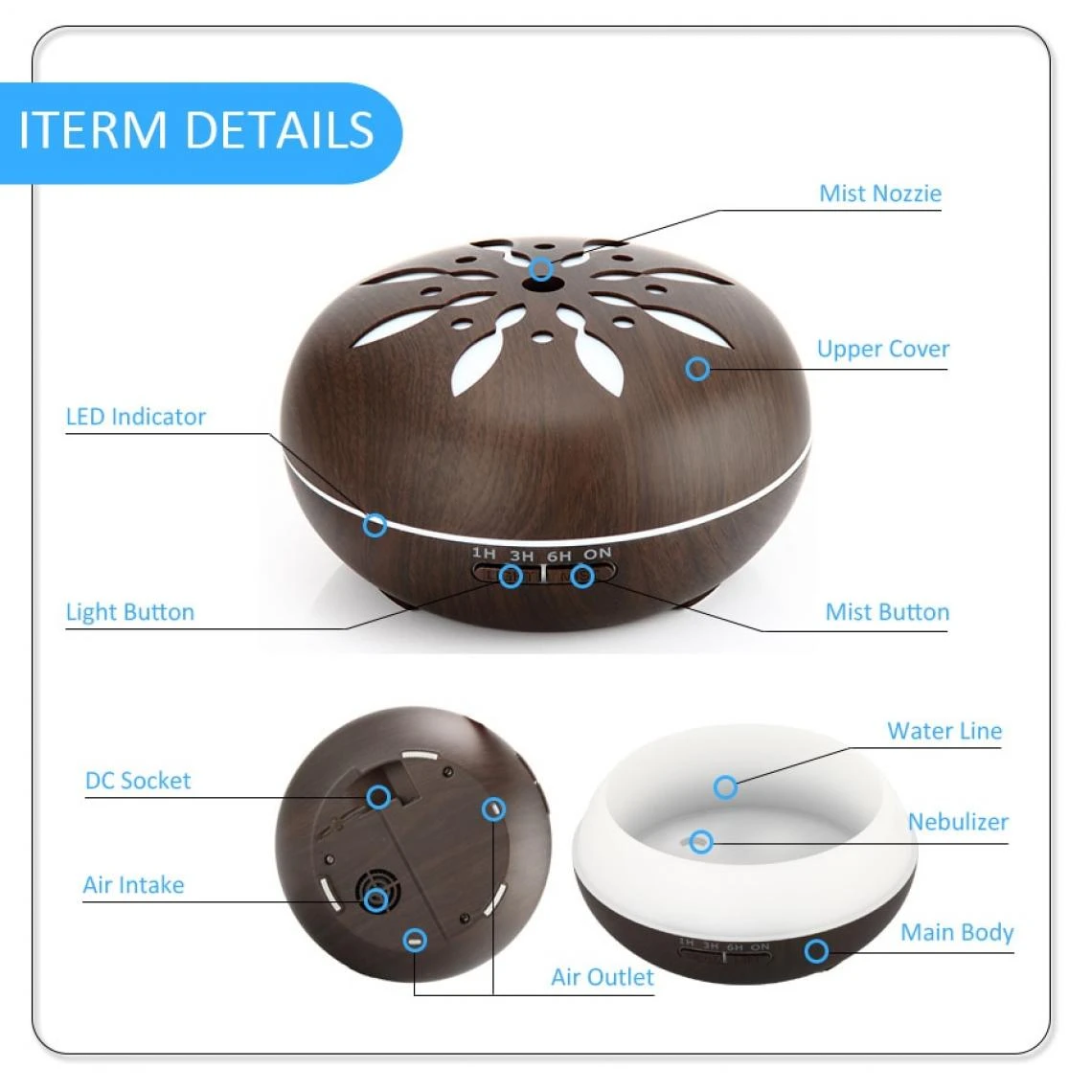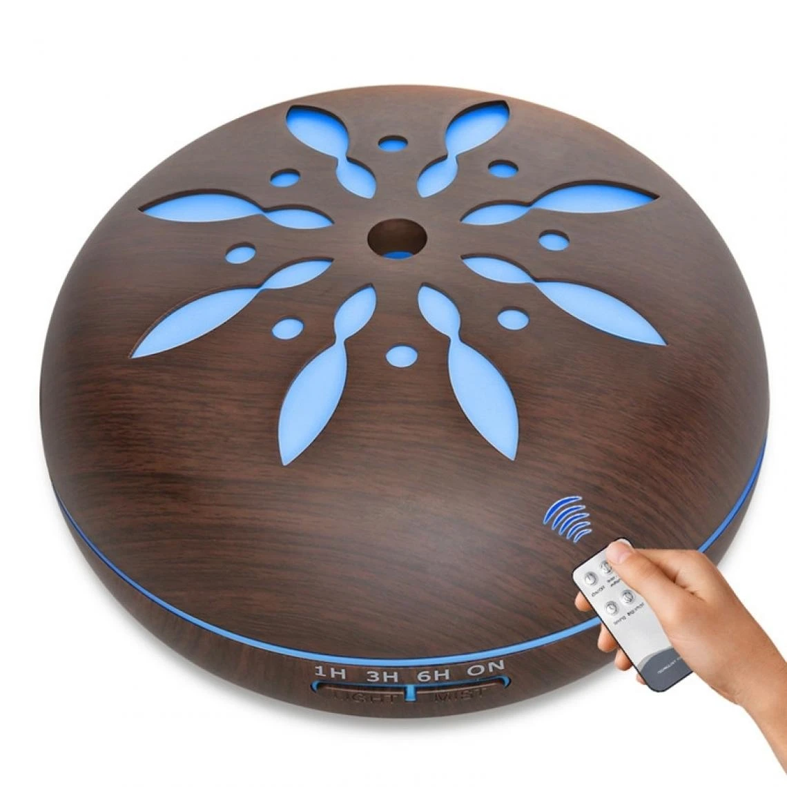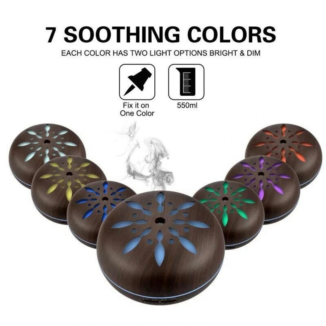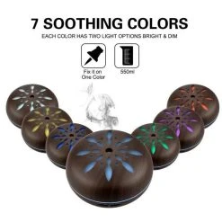 Points forts Universal Diffuseur d’arômes télécommandé à 7 nuances de lumière LED, humidificateur d’huiles essentielles de brouillard frais à ultrasons