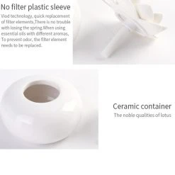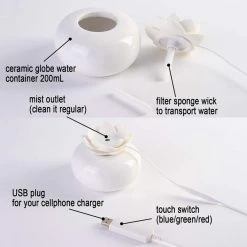 Des Ĺ“uvres d’art de fleurs dĂ©coratives, pas seulement un diffuseur Ă l’huile mais aussi un lotus dĂ©coratif Artware pour le bureau Ă domicile. Pure CĂ©ramique Fond et Top Blanc Lotus vous permettent de ressentir la nature, de haute qualitĂ© et calme, mettez-la sur votre bureau pour vous apporter de bonne humeur, profitez de cet humidificateur mignon avec de l’air propre, frais et doux. (Seule le cordon USB, l’adaptateur n’est pas inclus.)