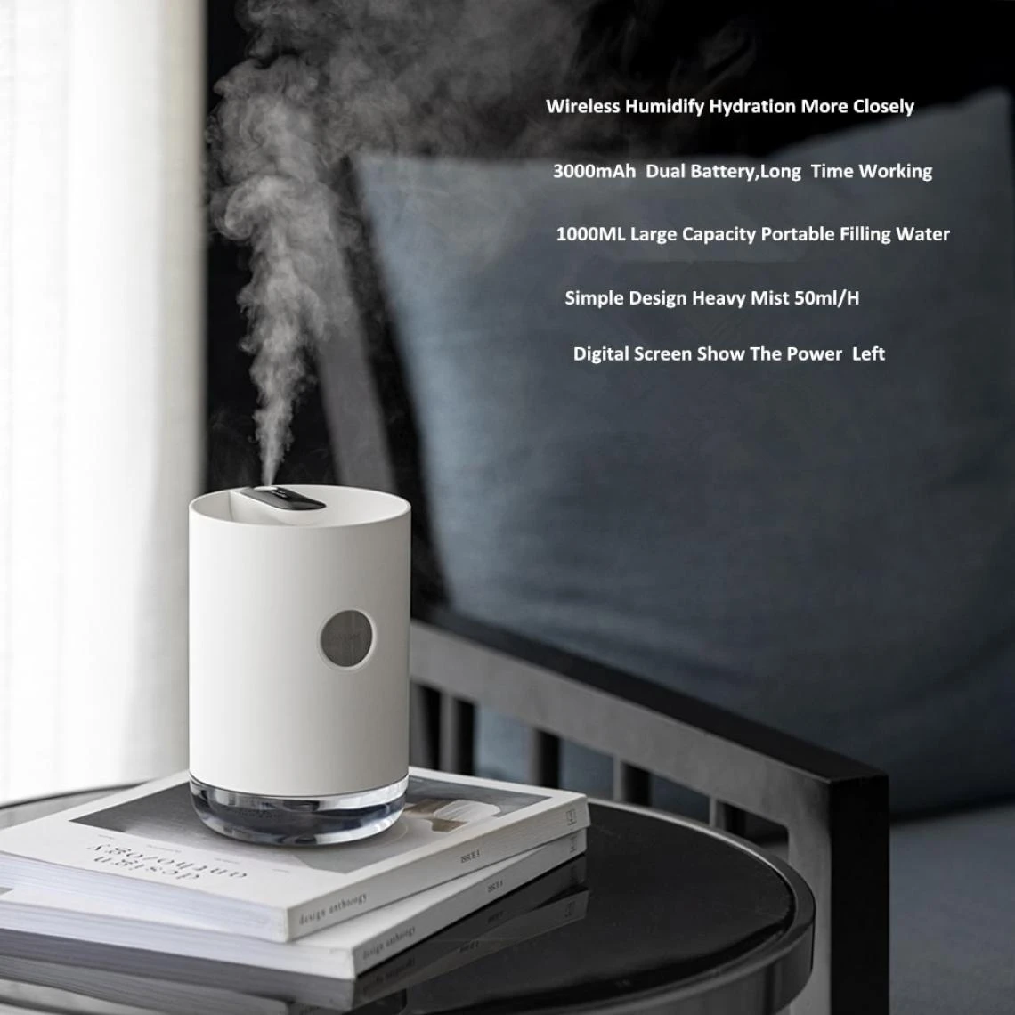 Nom du produit: Humidificateur d’air à domicile 3000mAh sans fil de 1000 ml