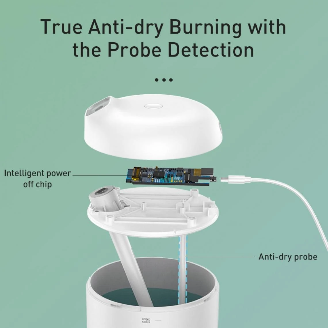 Réglage à deux niveaux, Mode de nuit, conception anti-sèche-brillons, 600 ml de grande capacité, sans fuite, hors tension intelligente de 10h