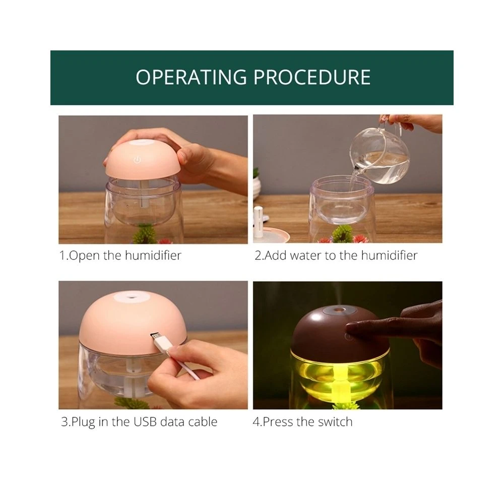 Humidificateur d’Air rose 2 W Portable Mini Micro Paysage Design USB Charge AromathĂ©rapie Air avec LED Lumière colorĂ©e, CapacitĂ© du rĂ©servoir d’eau: 180ML, DC 5V